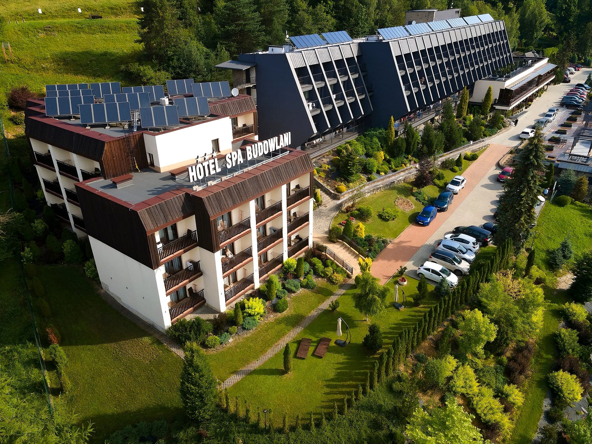 Budowlani Wellness & Medi Kompleks to nowoczesny resort w uzdrowiskowej Szczawnica, łączący funkcję hotelu, strefy wellness oraz zaplecza rehabilitacyjnego w jednym spójnym miejscu w samym sercu Pienin. Oferujemy komfortowe warunki pobytu, basen i sauny, programy regeneracyjne oraz przestrzeń sprzyjającą zarówno relaksowi, jak i aktywności. Położenie w otoczeniu Pienin sprawia, że każdy pobyt można wzbogacić o kontakt z naturą i górskim krajobrazem. Tworzymy miejsce, do którego chce się wracać — niezależnie od pory roku.